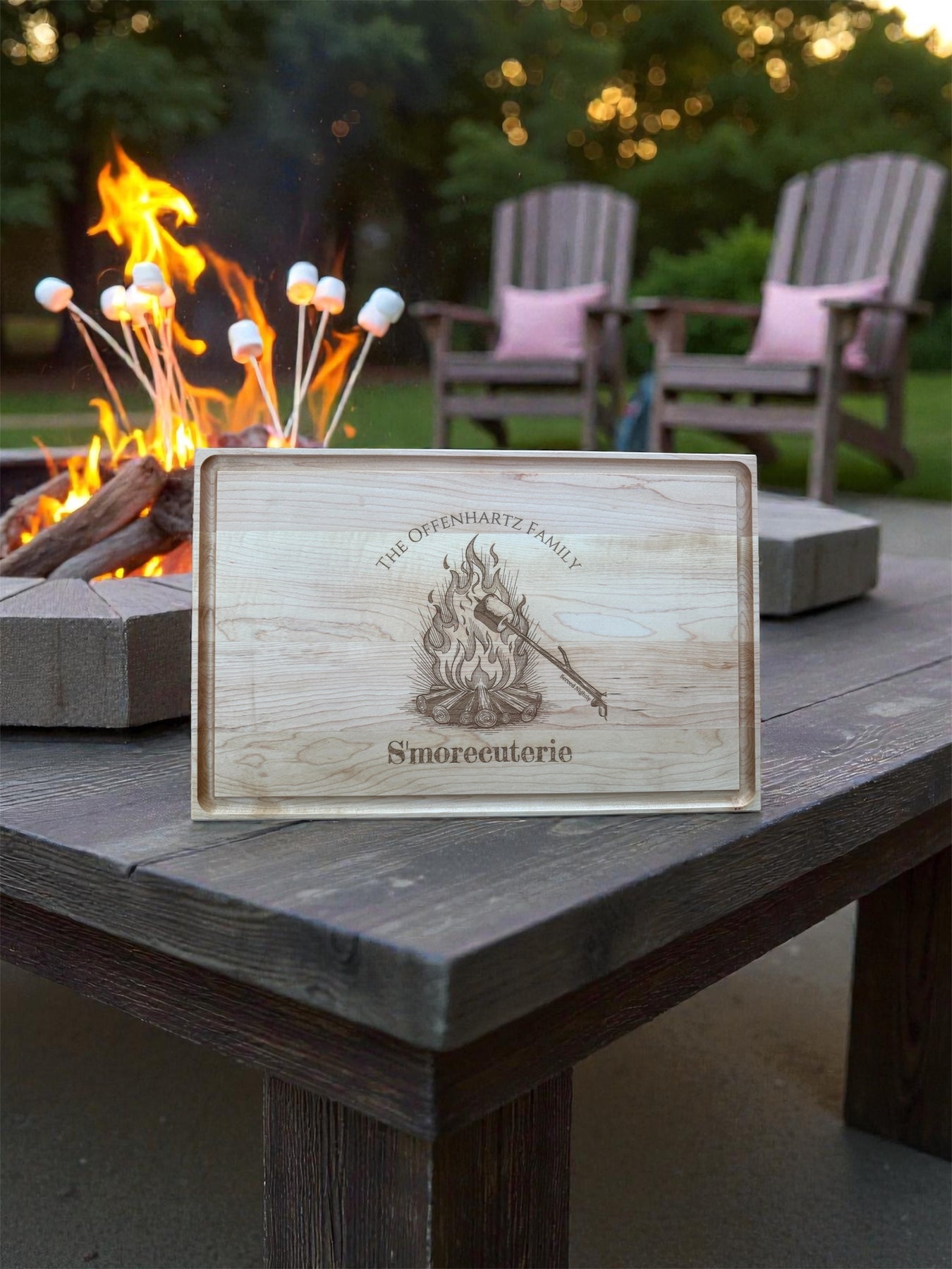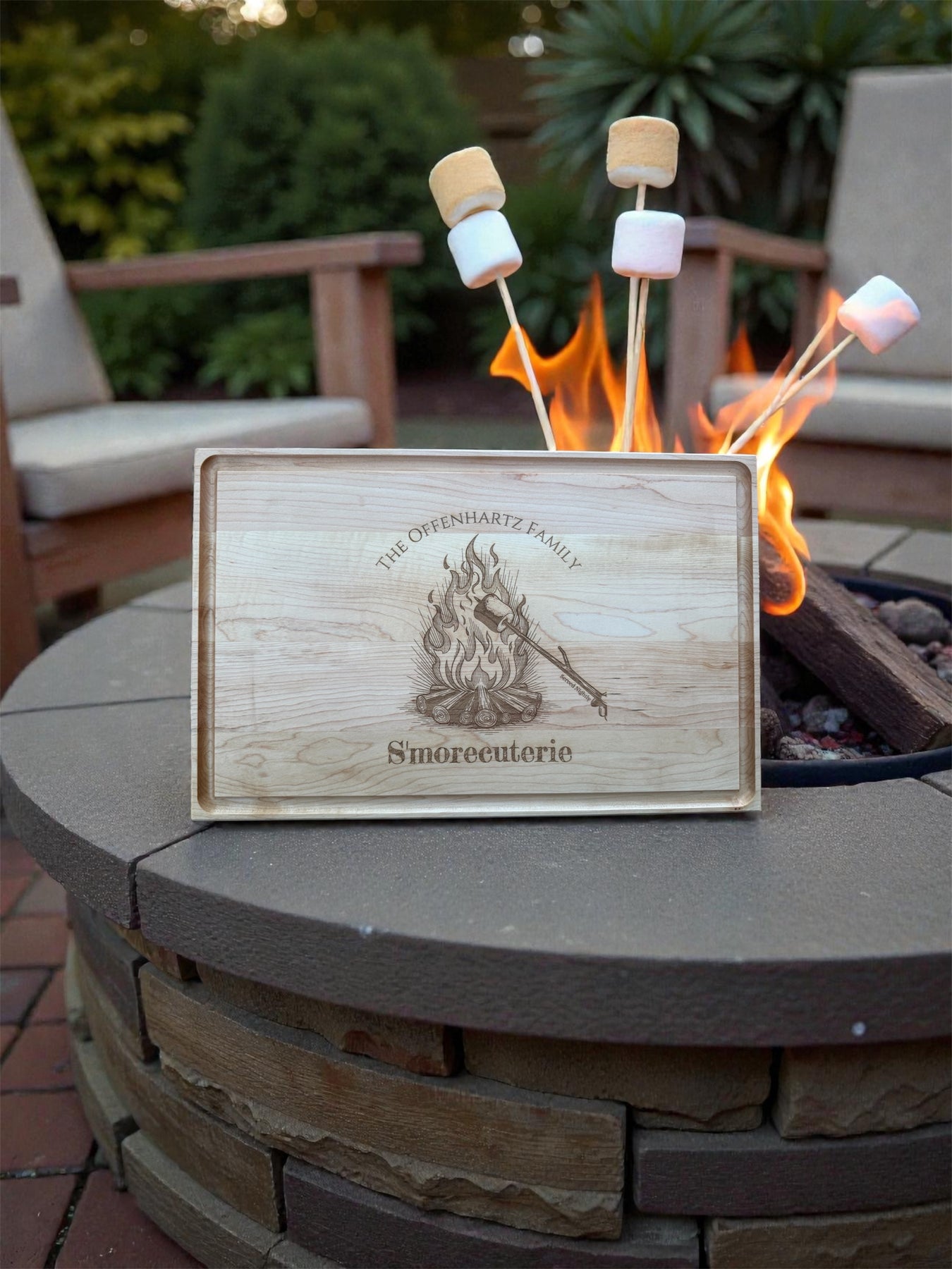 The S’morecuterie Board is our personalized outdoor serving board, created to celebrate shared evenings, open flames, and the simple joy of gathering together. Designed for backyard fires, lake house nights, and family traditions, it is frequently chosen by families, hosts, and thoughtful gift-givers seeking a piece that feels warm, meaningful, and complete from the moment it is unwrapped.